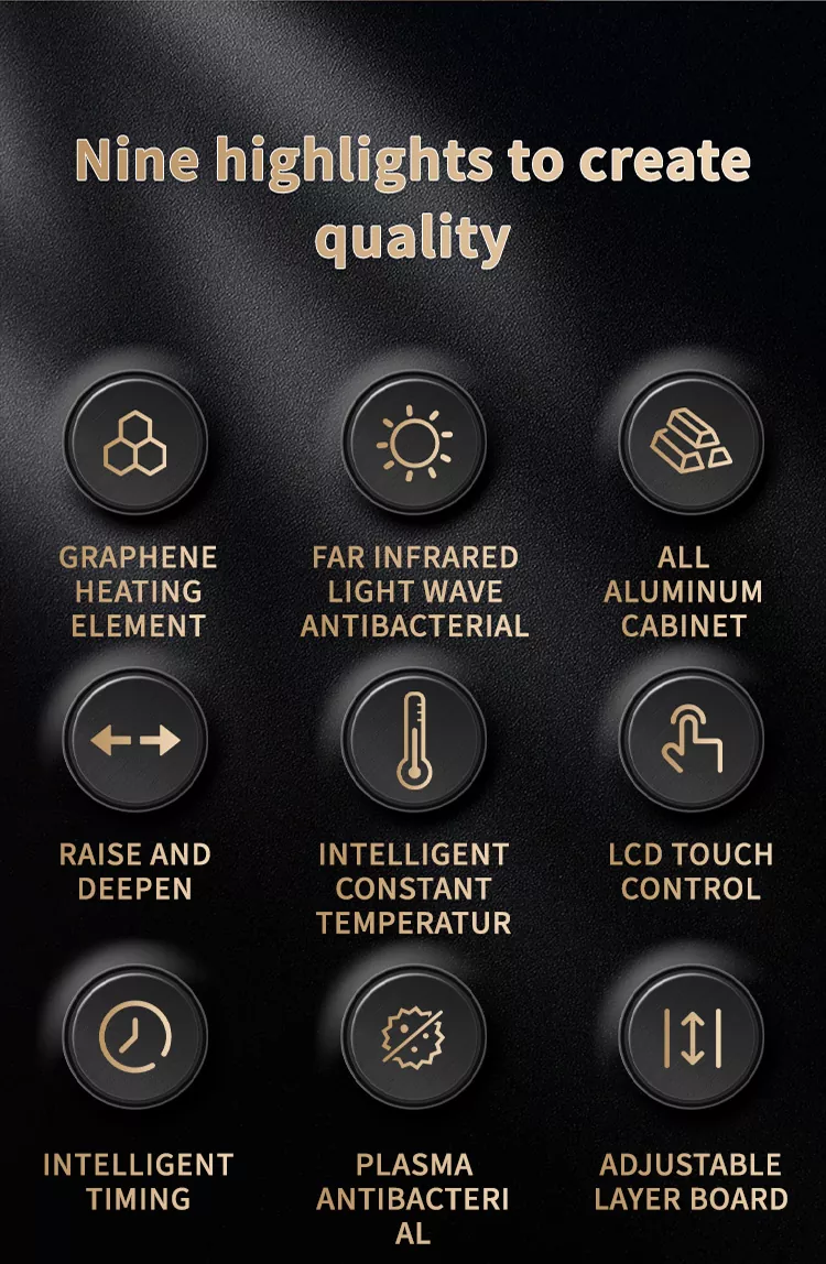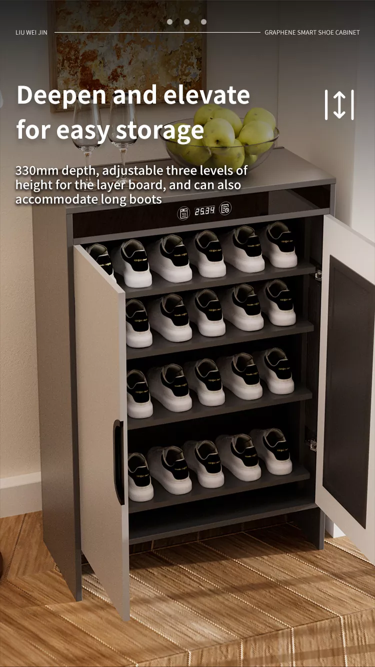 Το τελευταίο γραφείο ξήρανσης του χρονοδιαγράμματος Graphene Electric Heating, που αναπτύχθηκε από το Liuweijin, παρέχει δωρεάν αντικατάσταση και απομακρυσμένη υπηρεσία απομακρυσμένης εγγύησης. έχει ελεύθερα ρυθμιζόμενο χώρο αποθήκευσης, κάθε στρώμα του ράφι μπορεί να ληφθεί ξεχωριστά και το υπουργικό συμβούλιο έχει οθόνη οθόνης υγρού κρυστάλλου. Μπορεί να ολοκληρώσει τη λειτουργία της οθόνης θερμοκρασίας και του ευφυούς χρονισμού. Στεγνώστε τα παπούτσια σας, αντισταθείτε στα βακτηρίδια και απομακρύνετε και προστατεύστε την υγεία των ποδιών.